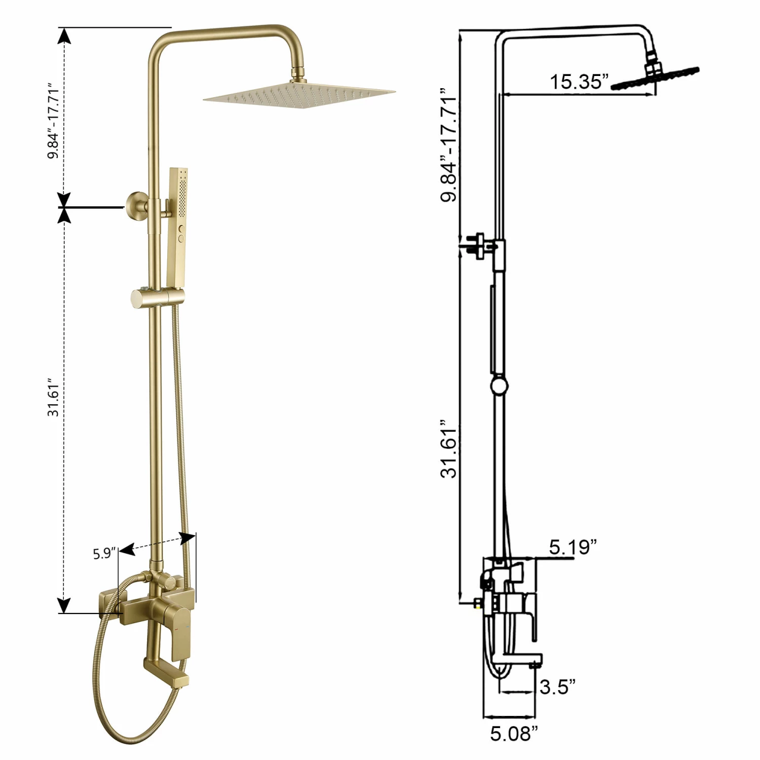 - 【3-Functions Shower System】The valve and diverter are part of it, and can easily switch between tub and hand shower head and overhead showerhead.