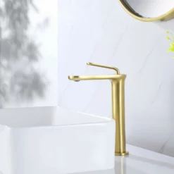 Tall Bathroom Faucet For Vessel Sink Single Handle Brushed Gold Bathroom Vessel Faucet RB0957