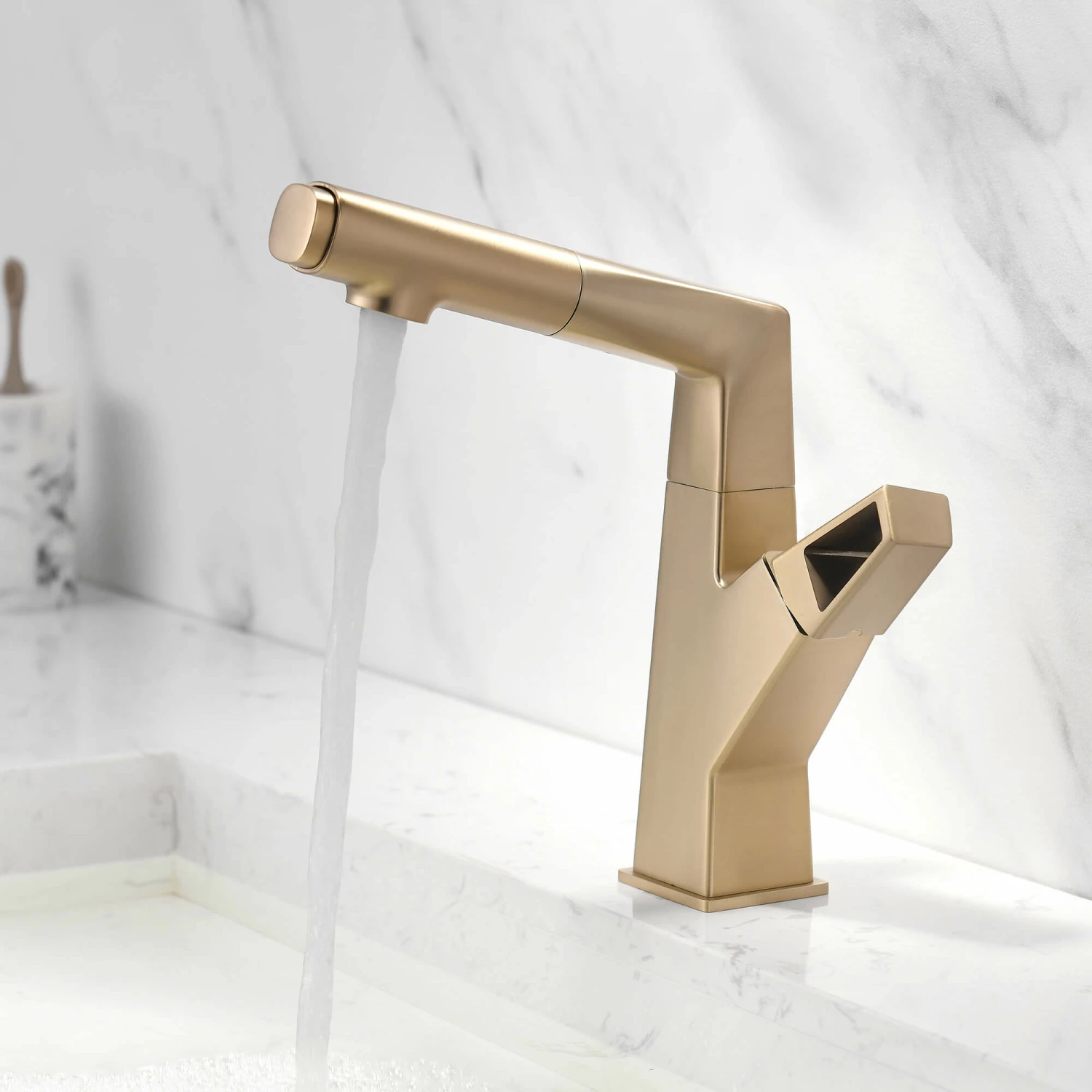 - Pull out bathroom basin tap: You can pull the sprayer out 60cm. Cleaning every corner of the sink is easy. The nozzle can be retracted smoothly after use.