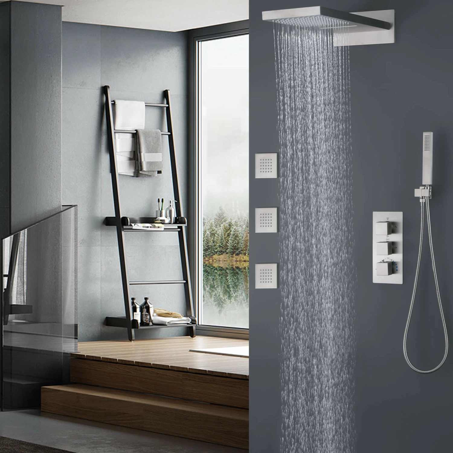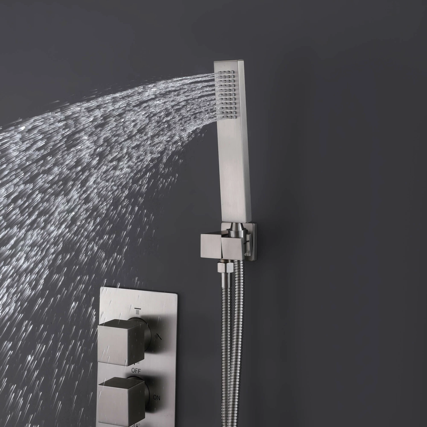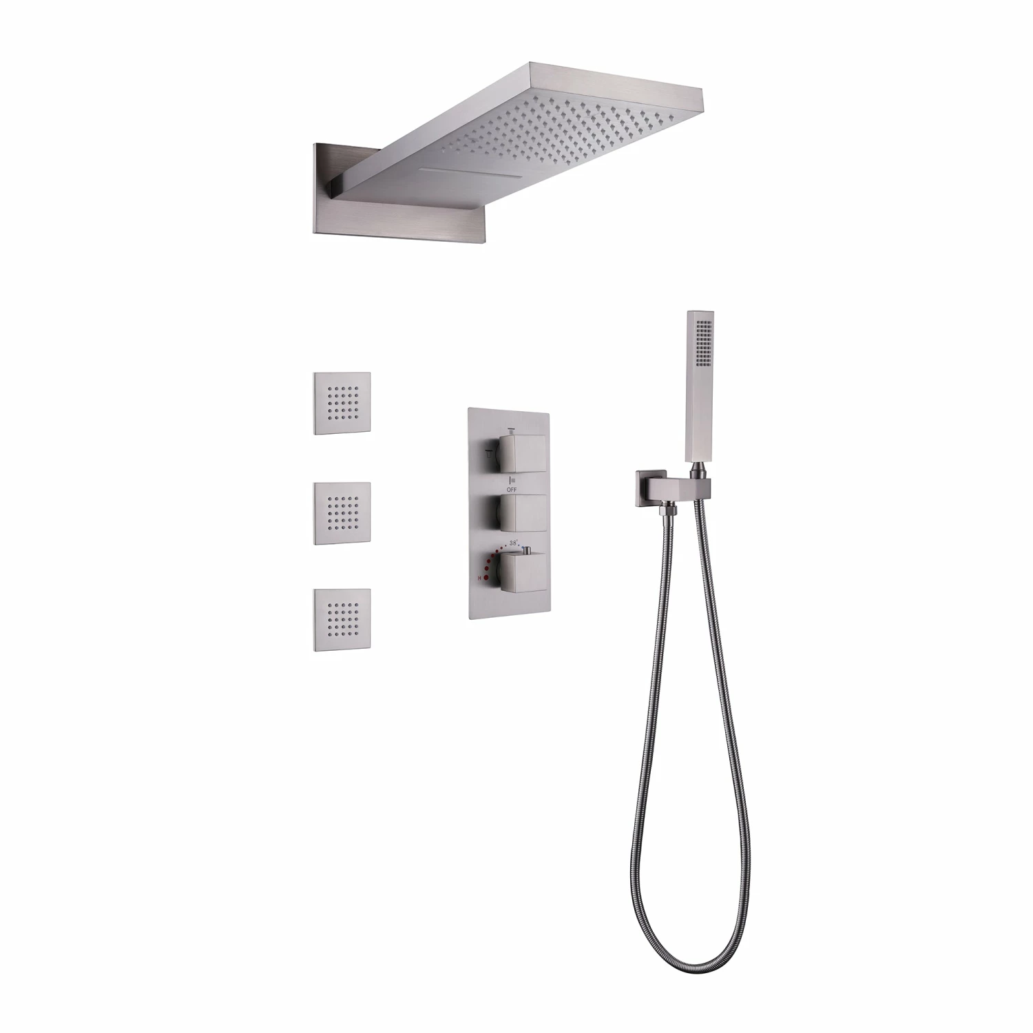 - 【USE at The Same Time】Each shower knob of the brushed nickel shower system can be used individually or simultaneously. The water flow of each showerhead can be adjusted individually for a more comfortable and convenient shower experience.