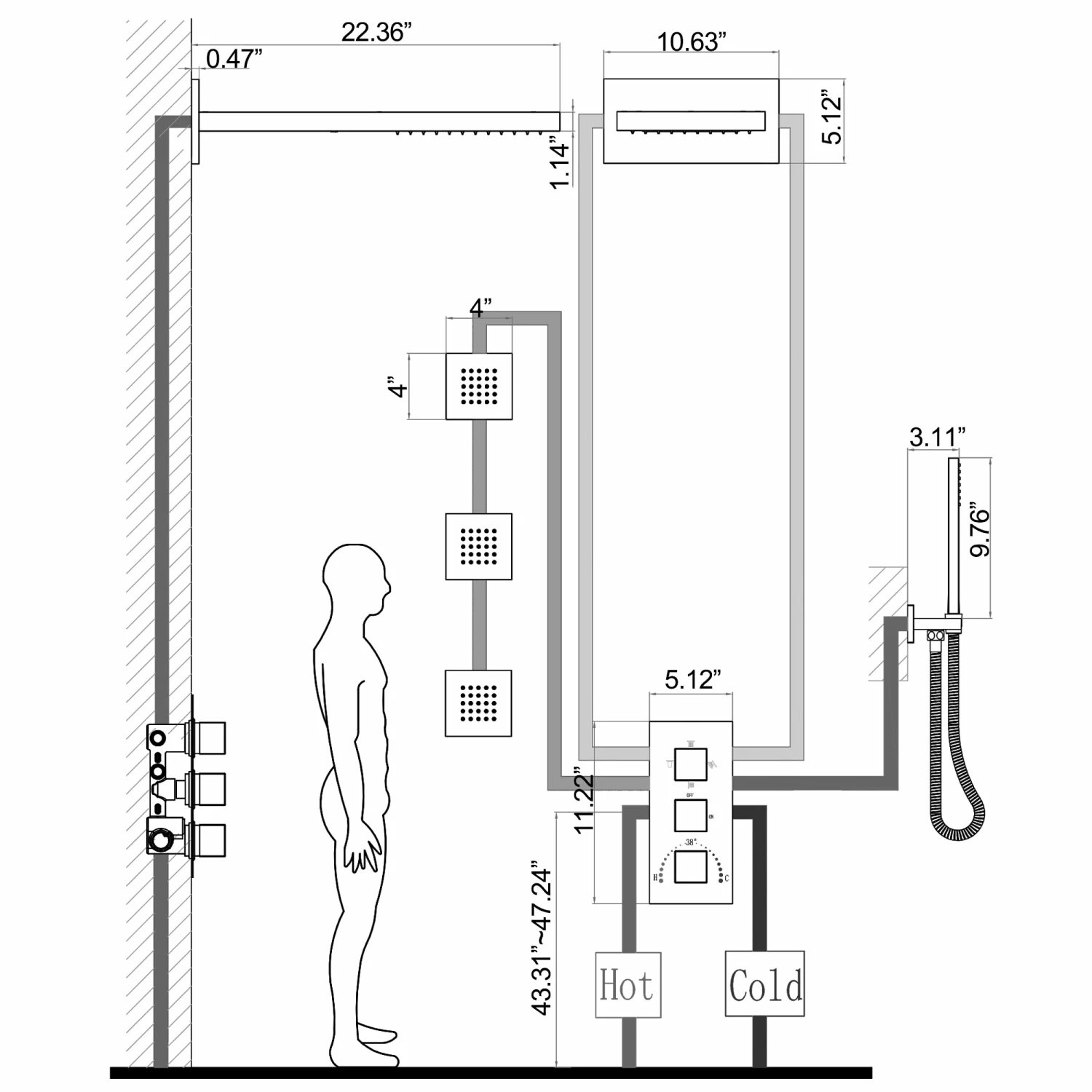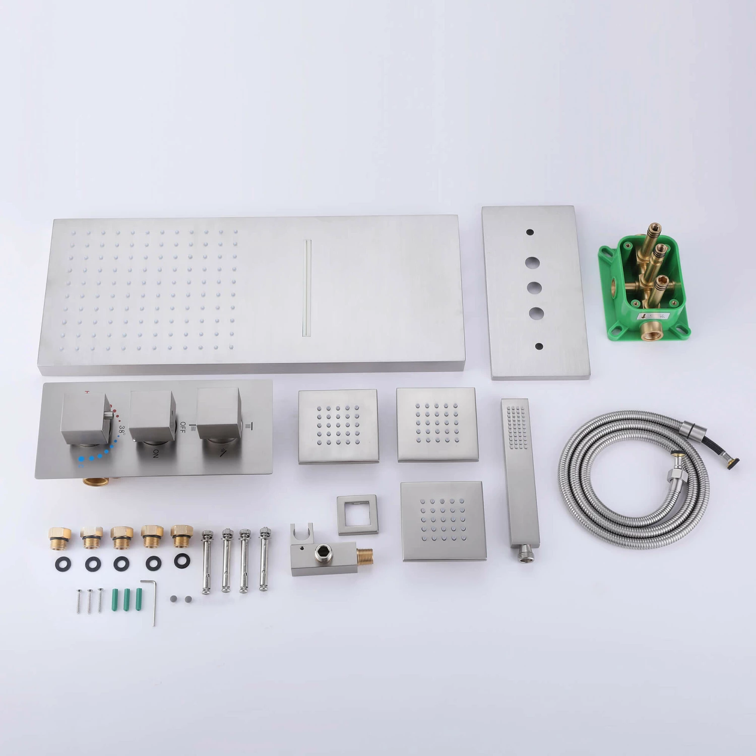 - 【THERMOSTATIC 38°】This thermostatic shower valve safely locks the temperature at 38° (100°F) without having to re-adjust the temperature every time, and at the same time to prevent the discomfort caused by too high and too low temperature.
