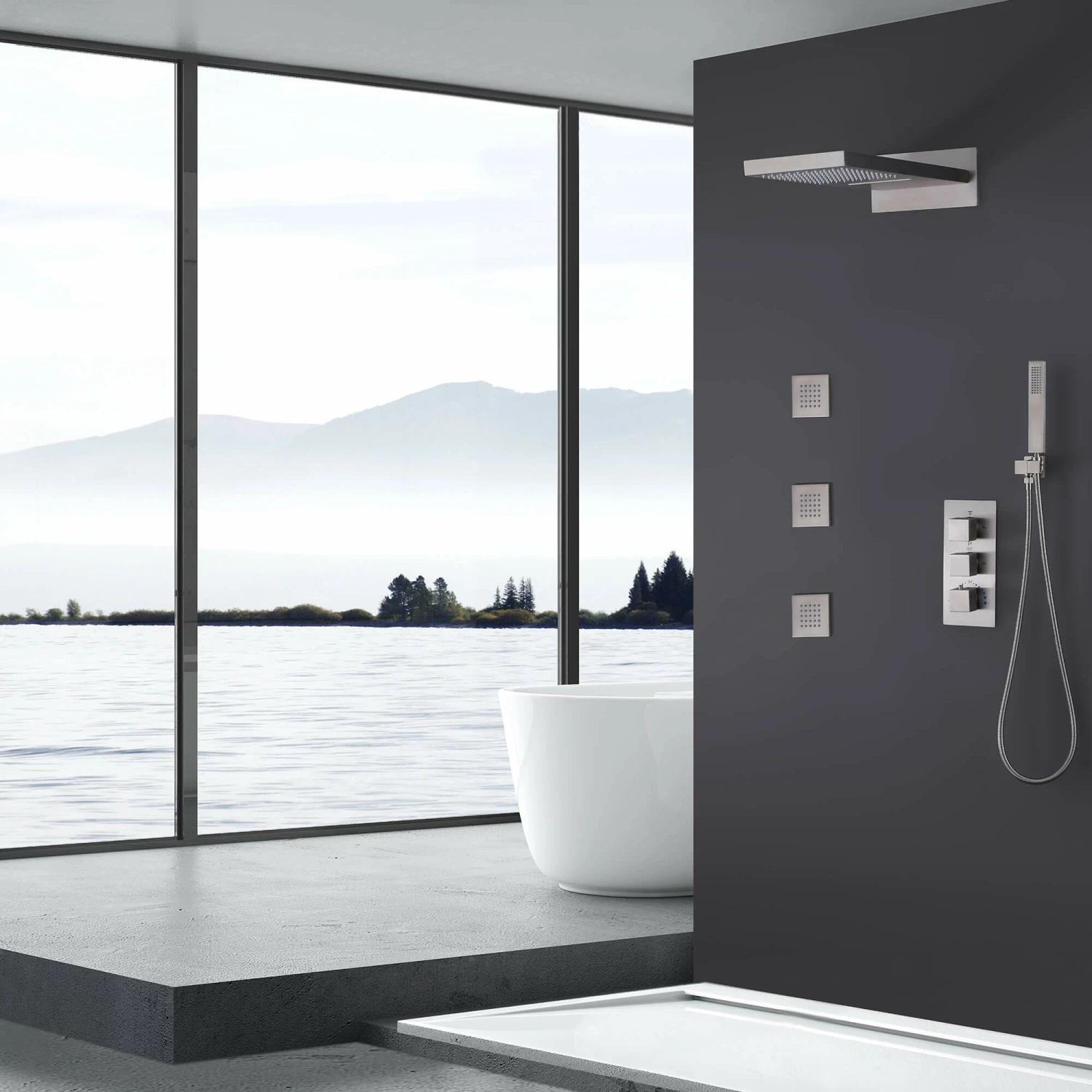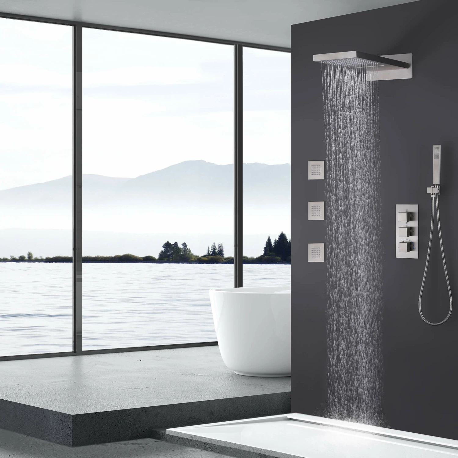 - 【OVERSIZED SHOWERHEAD】Oversized shower head, spa shower experience, mix air and water to simulate the feeling of natural rainfall, enjoy the high flow shower space. Stainless steel material, modern style, durable.