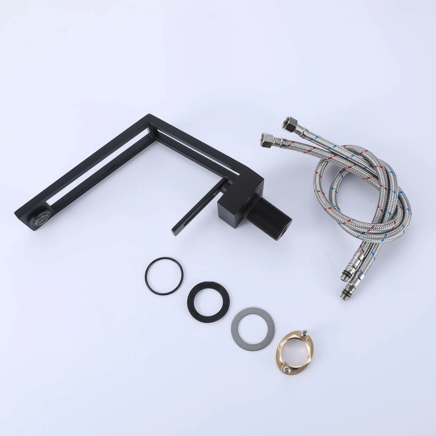 - Easy Installation — Single hole bathroom faucet is easy to install. Hot and cold water hoses, brass hose fitting, installation hardware and instruction are all included in the package.