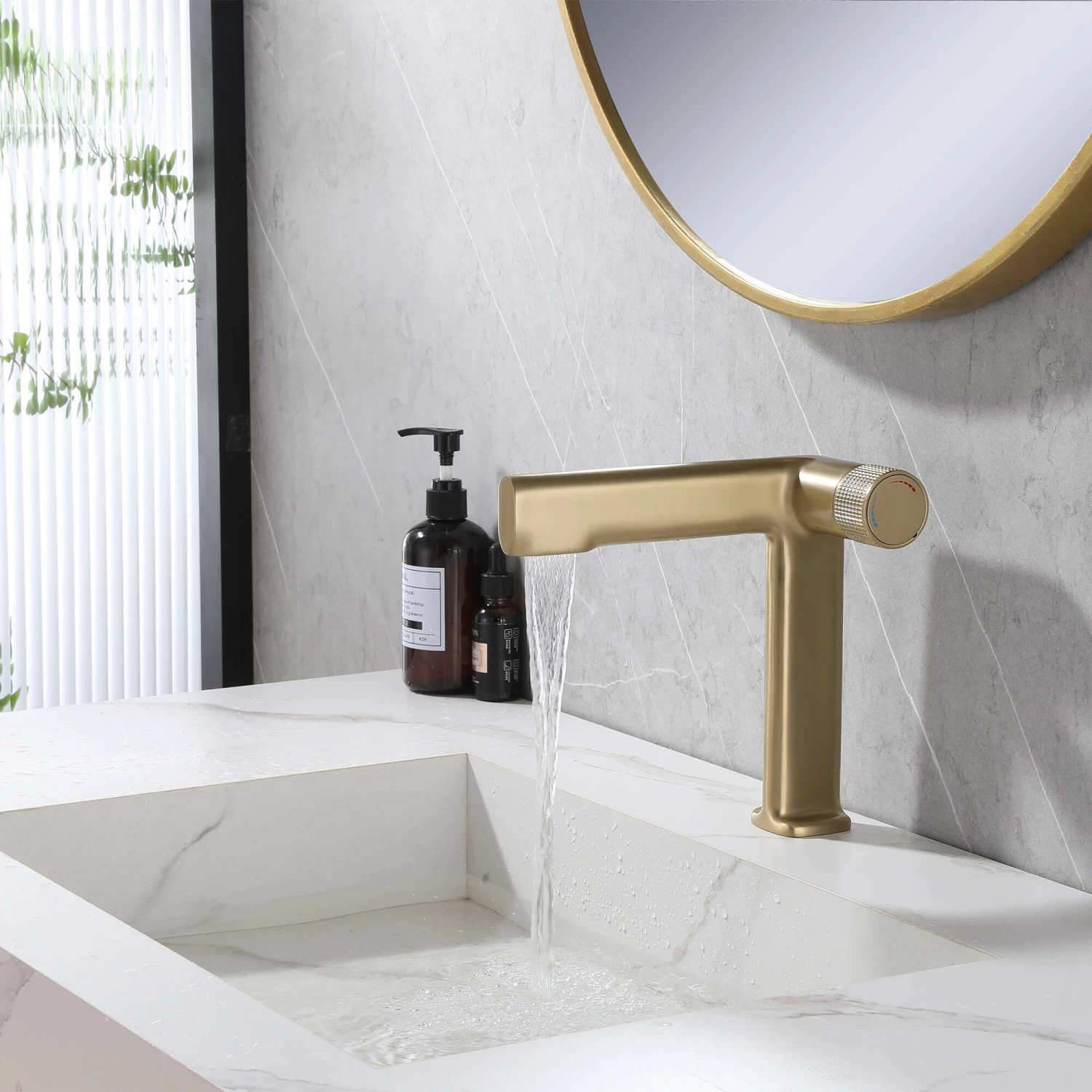 - 【Unique Design】The thin and light design is full of technological sense, and the simple and elegant shape makes it easy to enhance the modern look of your bathroom. The faucet is equipped with a waterfall spout, which sprays elegant water downwards to form a miniature waterfall, making washing a breeze.