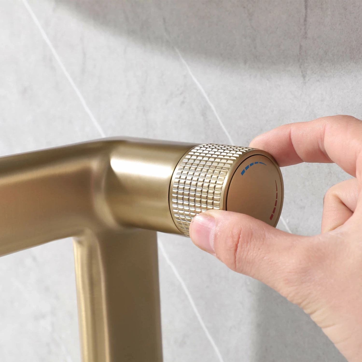 - 【Single Knob Control】This single hole bathroom sink faucet uses a knob switch. You can easily control the ratio of hot and cold water by turning it easily, making washing a pleasure.