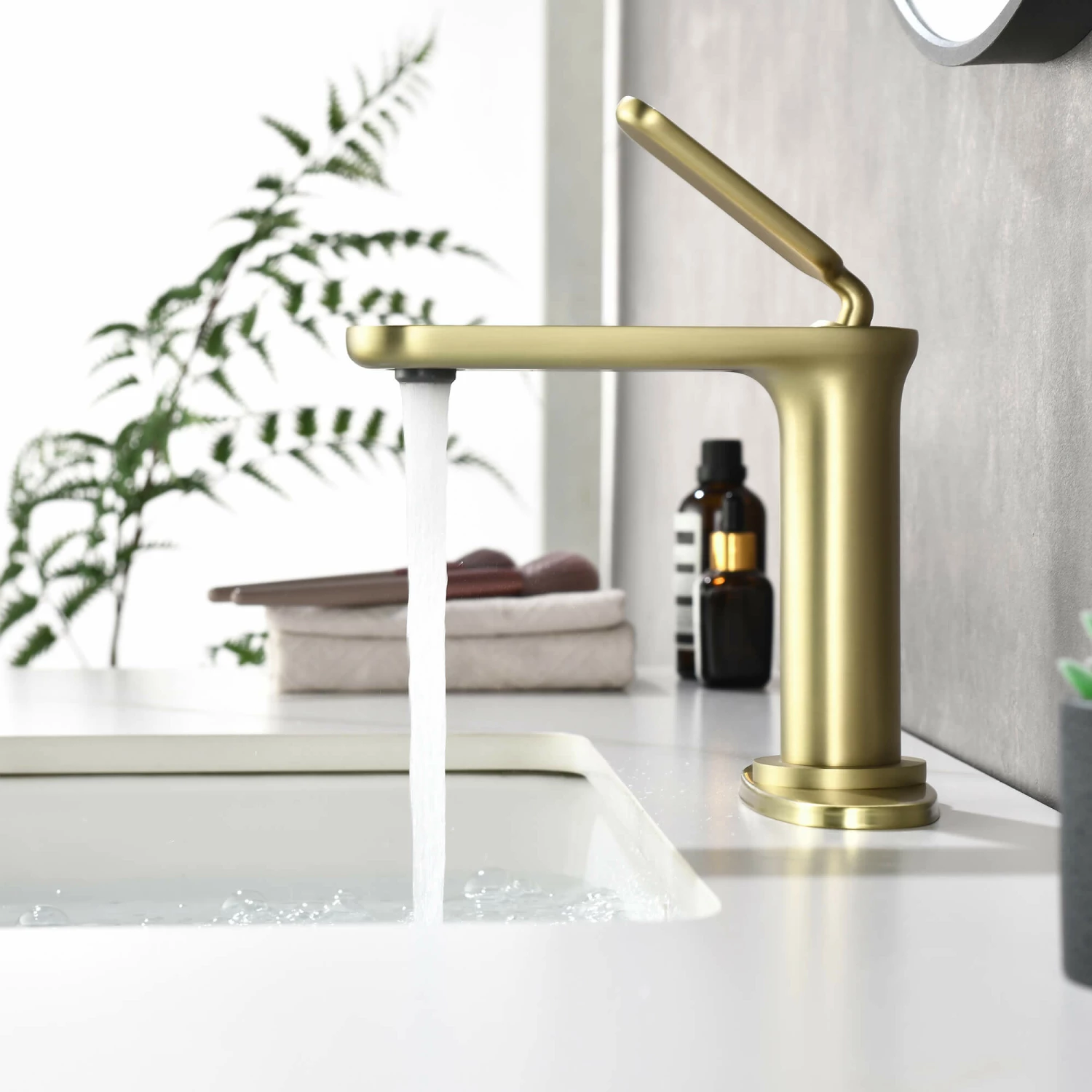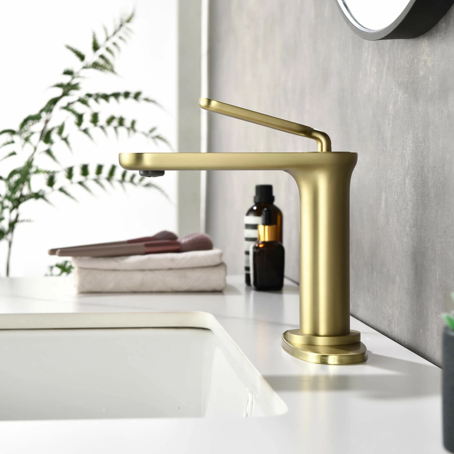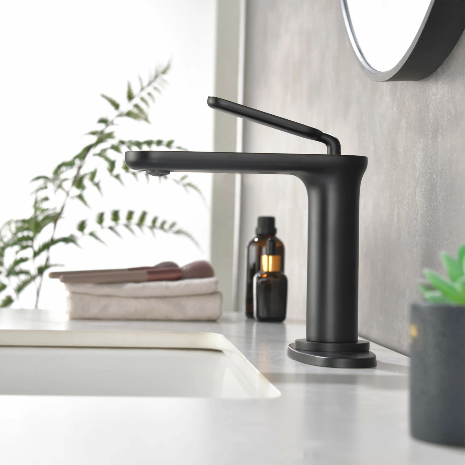 - This single-handle bathroom faucet boasts contemporary, curved edges for an appealing, yet substantial style that brings a sleek feeling to the bathroom.