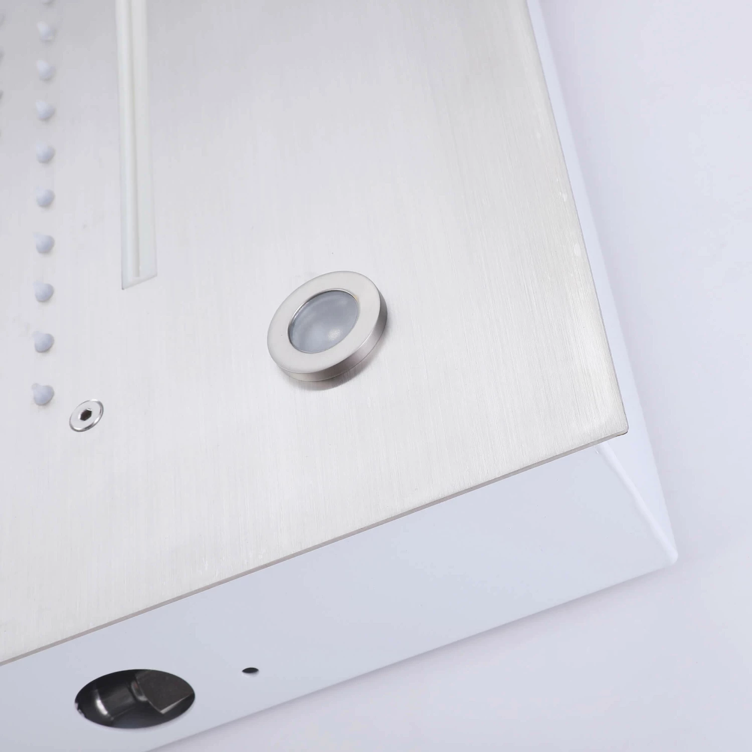 - LED SHOWER HEAD –Outside four lights are powered by 100~240V AC (containing transposer), several kinds of light colors change by time in turn(only this changing model and it cannot keep one LED Light Color). While inside LED dark lights are powered by rain water function of shower head(with hydrogenerator insided) falling- Light Color changes with rain water temperature(Blue light ≤about 29℃, Green light about 30~39℃, Red light about 40c~49℃ ).