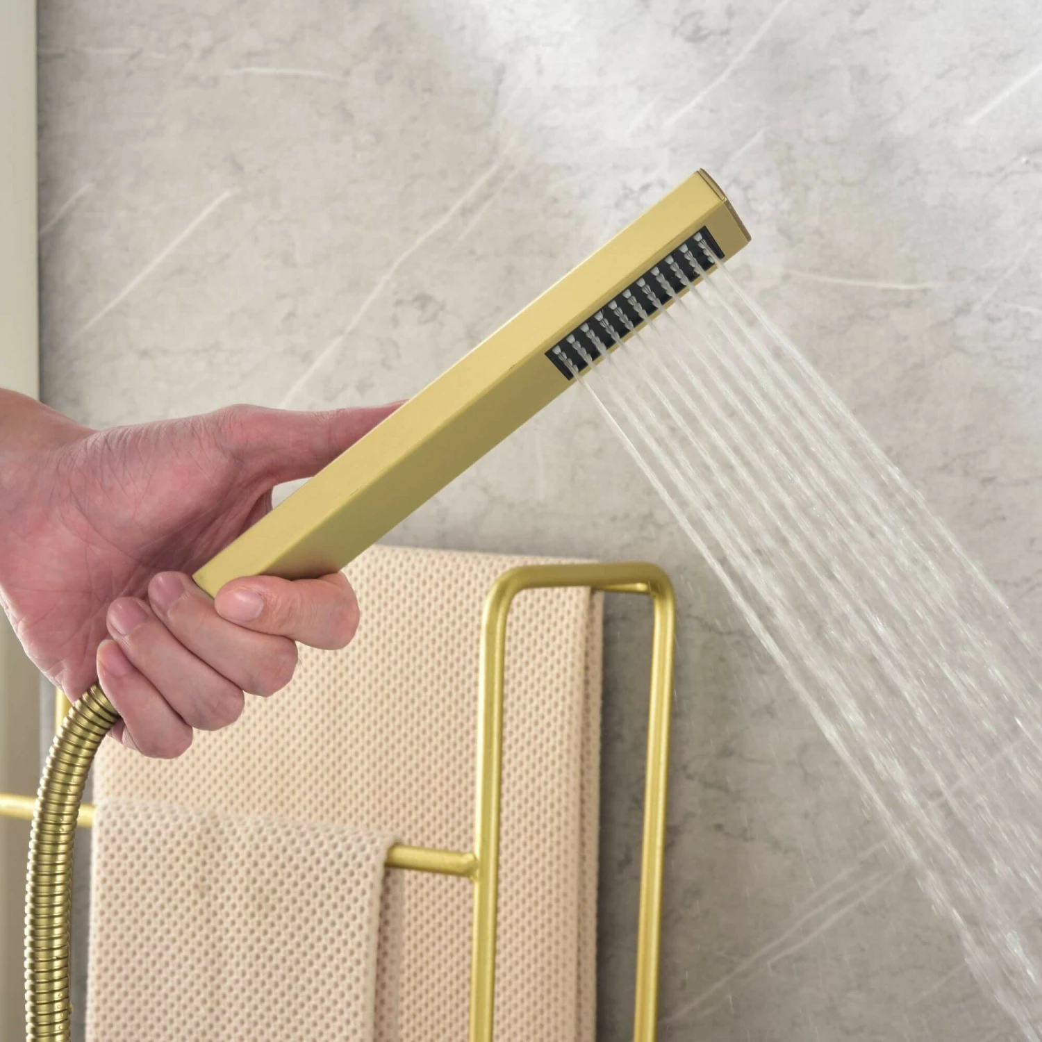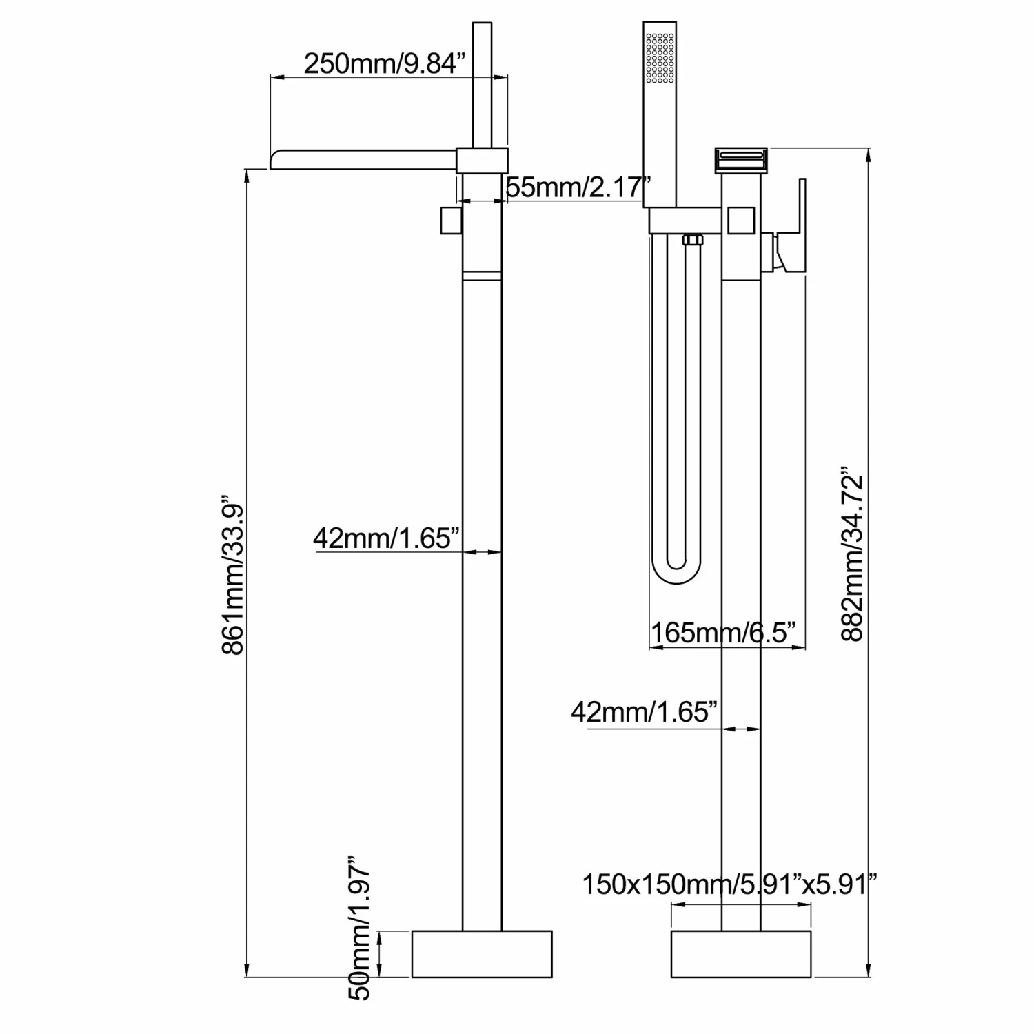- 【Stable Floor Mount Design】The tub filler shower is floor mounted; RBROHANT designed a brand new base which screwed with 4 bolts and one screw to install the tub filler, the great design will make our freestanding tub filler more stable than others and will not wobble like other’s when the tub filler is working.