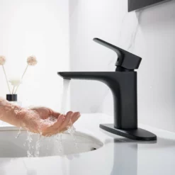 Matte Black Single Handle Bathroom Faucet With Deck Plate RB0876