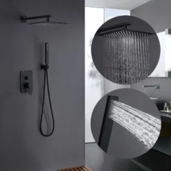 Shower System Matte Black Wall Mount 3-Function Tub Shower Combo Set RB1109