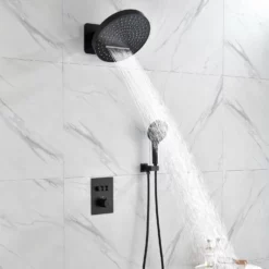 Wall Mount Thermostatic Shower System With 2-Function Rainfall Shower Head And Handheld Sprayer