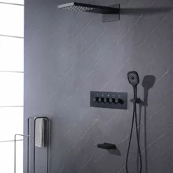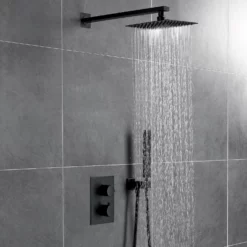 Wall Mount Thermostatic Rain Shower System Matte Black RB0843