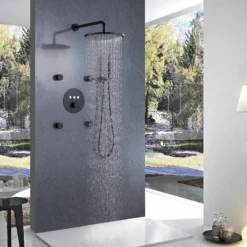 Wall Mount Thermostatic Shower Faucet Set With 12’’ Shower Head And 4 Body Spray Jets RB1114