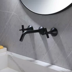 Wall Mount Bathroom Faucet 2 Handle Solid Brass Matte Black RB0735