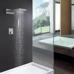 - SUPER SHOWER — 12 inches rain shower head large enough to cover your body in the shower, to provide an even, full rain spray from above. The handheld shower helps with washing kids and bathing pets.