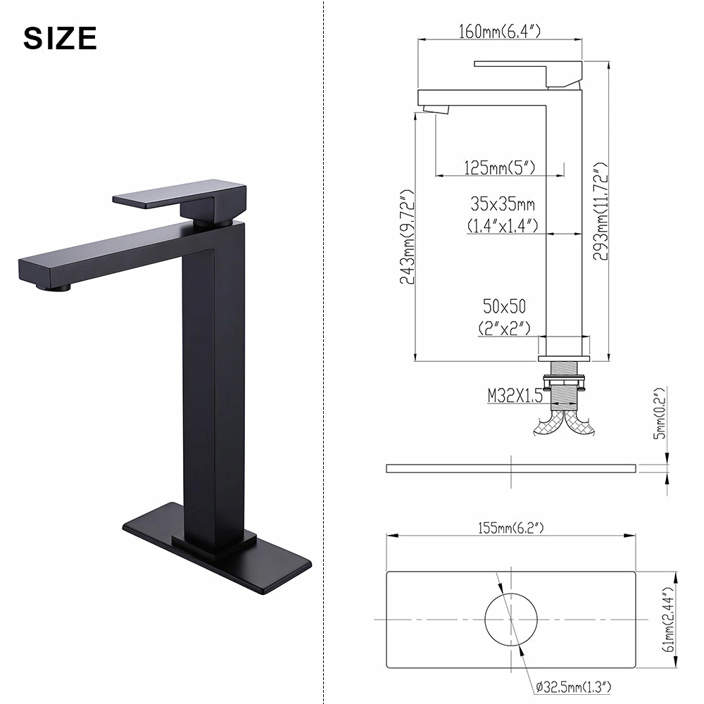 - The bathroom vessel sink faucet is suitable for 1 hole installation cover plate included.