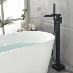 Modern 2-Function Freestanding Waterfall Bathtub Faucet Matte Black RB1078