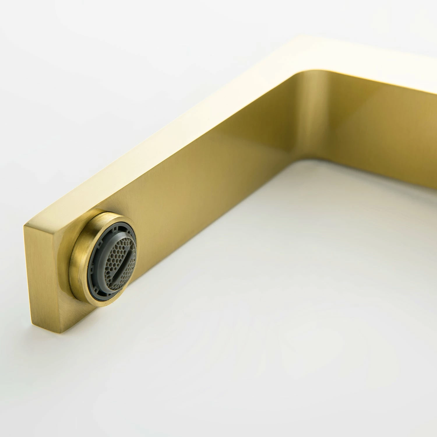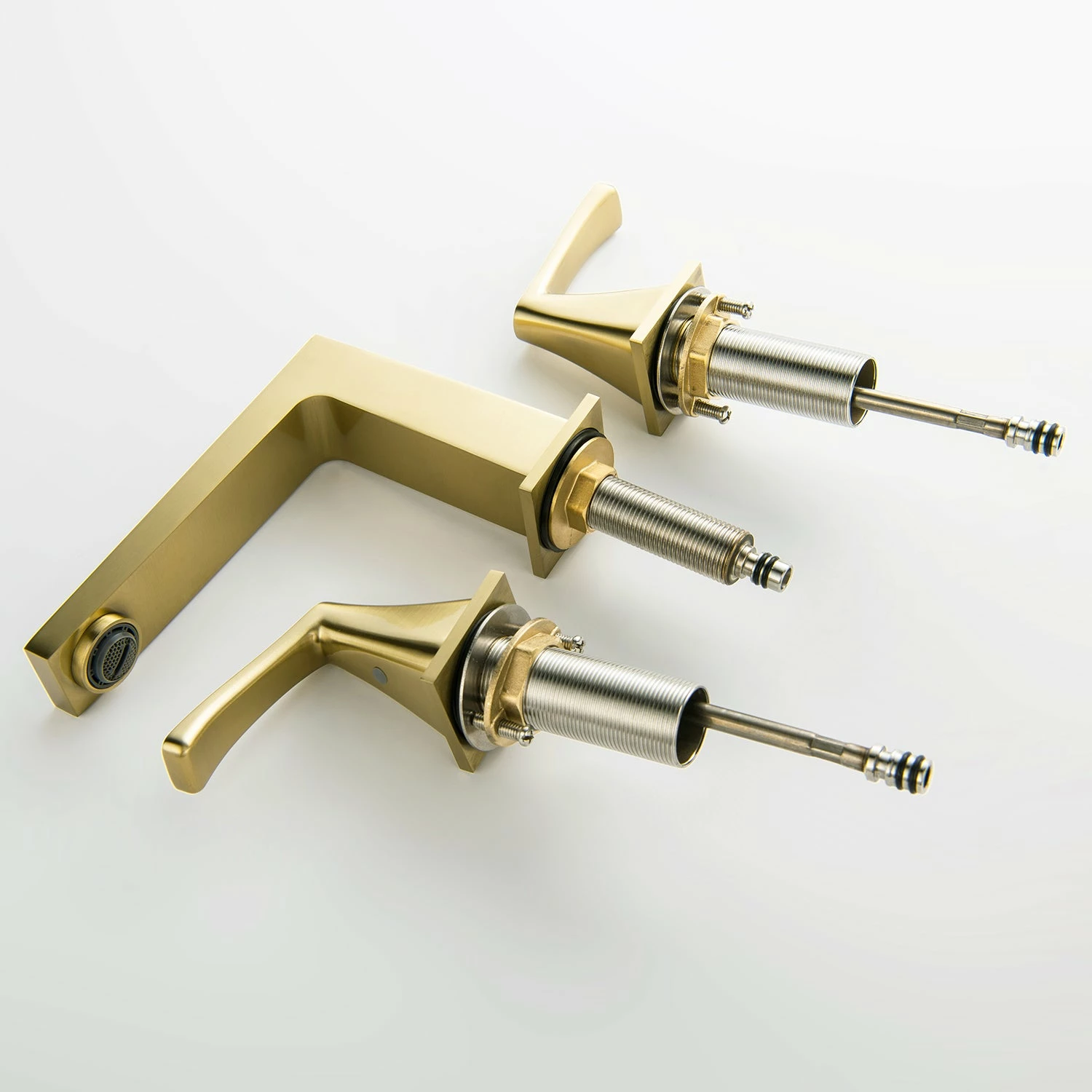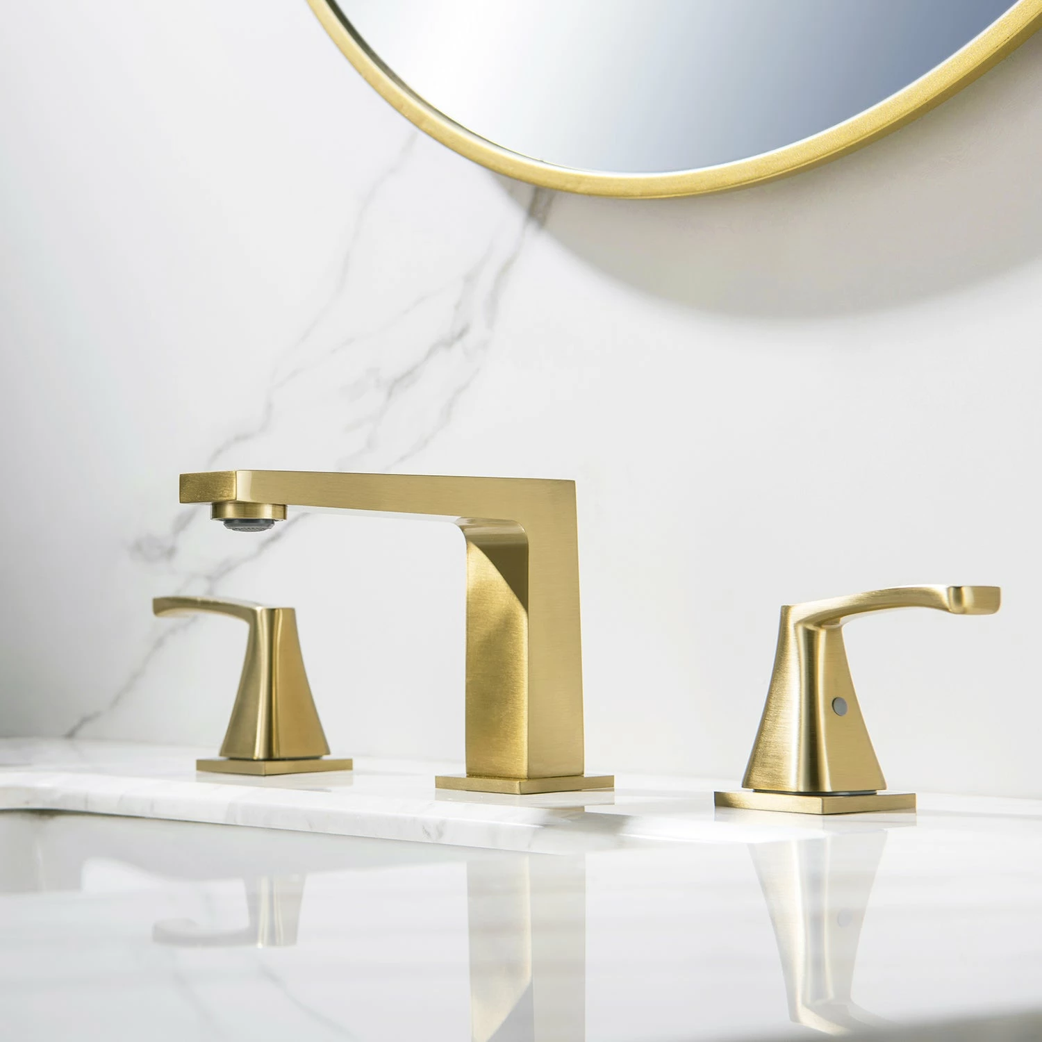 - Widespread Modern Aerator Spout Square Base Cover bathroom vanity/Bathtub/lavatory room faucet set, 2 handles for easy water flow & temperature adjustments.