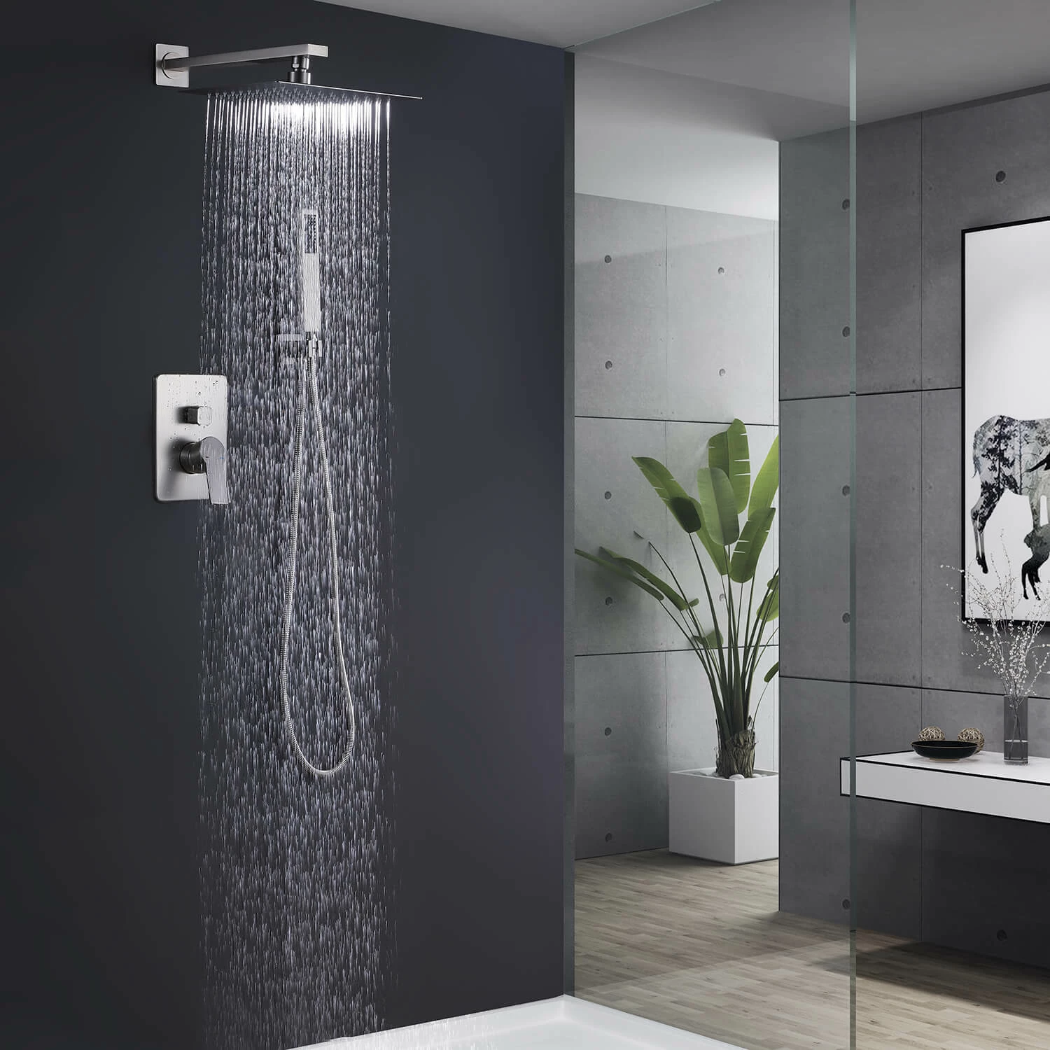 - Modern Shower Design: With a knob and a handle, you have full control of this shower system. With just a simple turning, then you can easily switch between the rain shower and the hand shower. Single lever handle for ease of temperature and flow control.