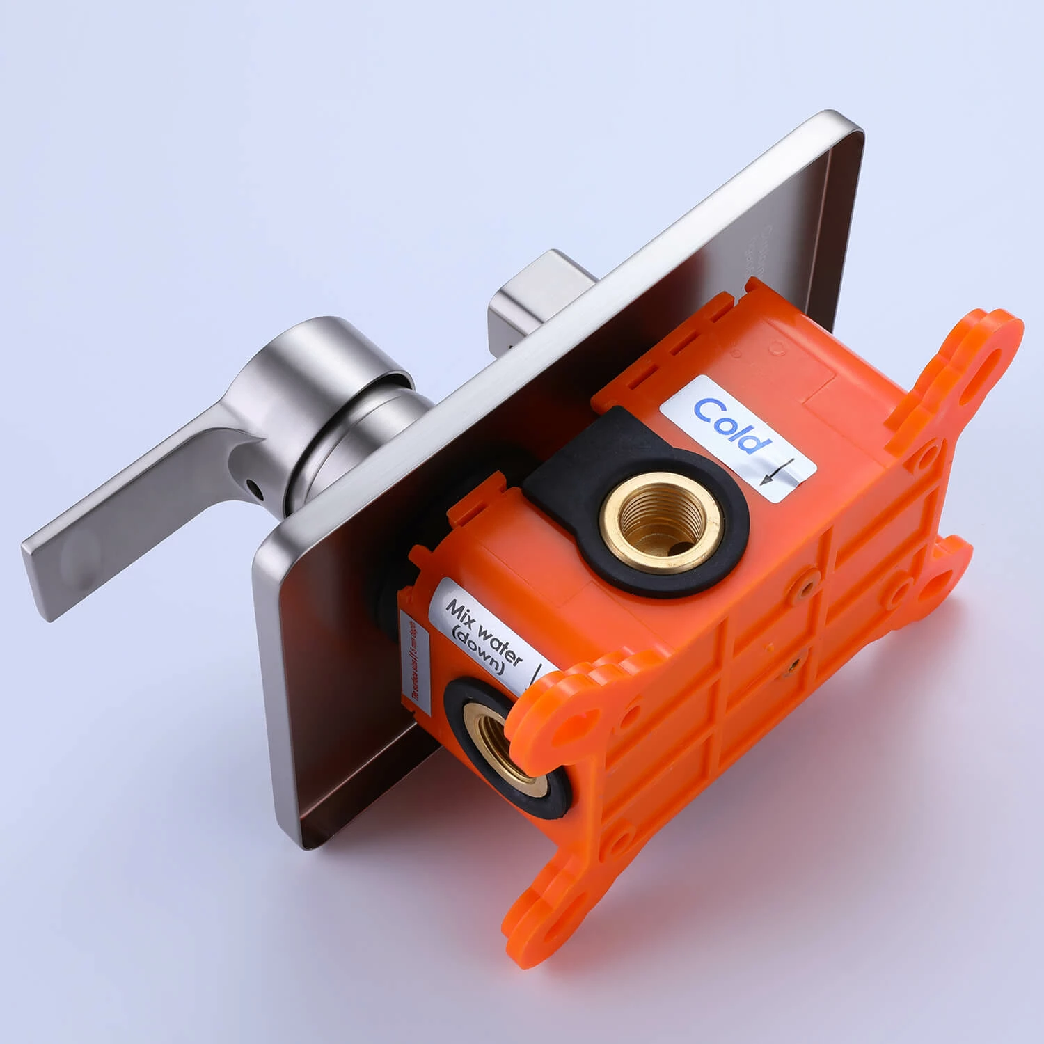 - Prevent Water Hammer: This pressure balance valve has two built-in check valves to eliminate water hammer noise effectively. The pressure balance valve’s cartridge monitors water pressure balance, helping to protect you from being scalded by sudden changes in hot or cold water pressure.