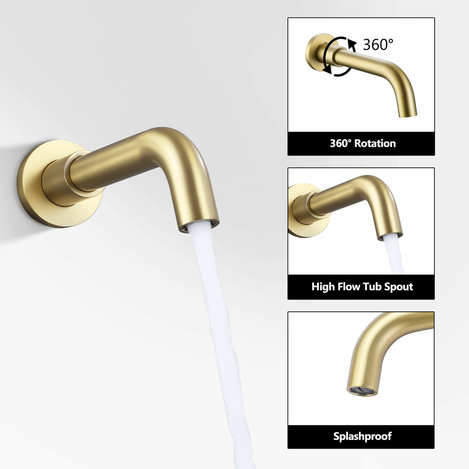 - Rough-in valve and tub spout constructed of solid brass for durability. The standard NPT 1/2″ threads are designed for use with standard US and Canada plumbing connections.