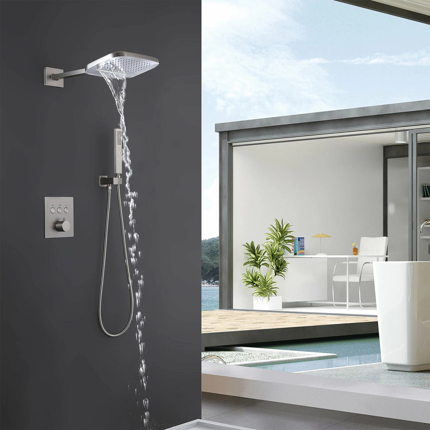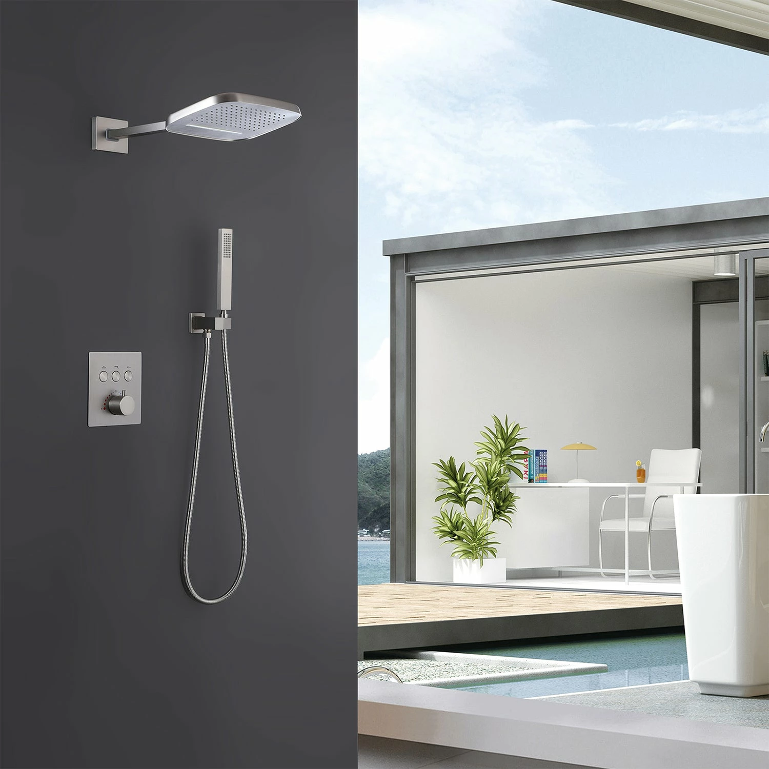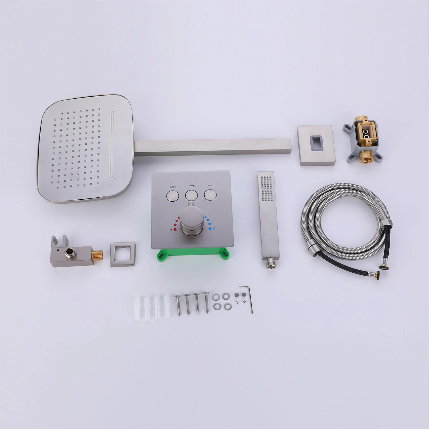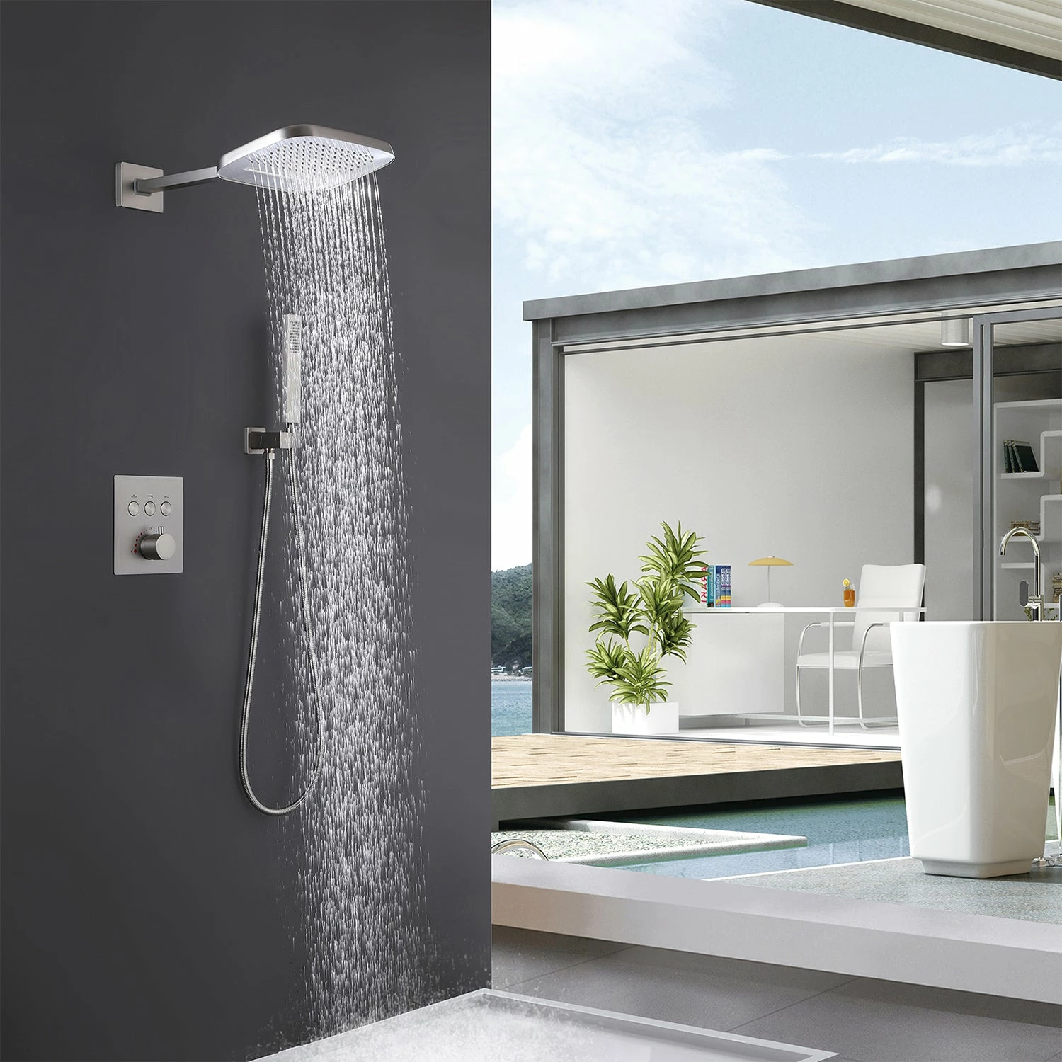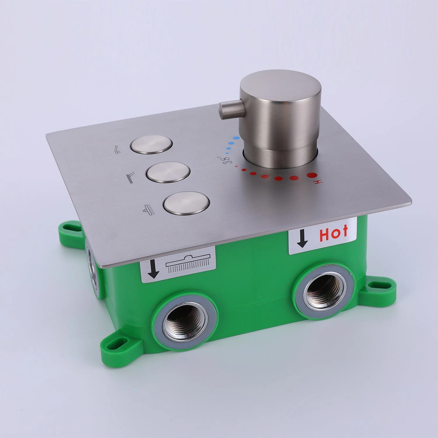 - 【High-Quality Anti-Scalding Shower Valve & Safe Shower System】Thermostatic Concealed Shower Valve(with WRAS Certificated) offers you excellent temperature control in your shower. The thermostatic shower valve can be set to a default temperature of (100° F), which is the most suitable temperature for the shower to prevent burns. When you press the control button, you can adjust the temperature you need.