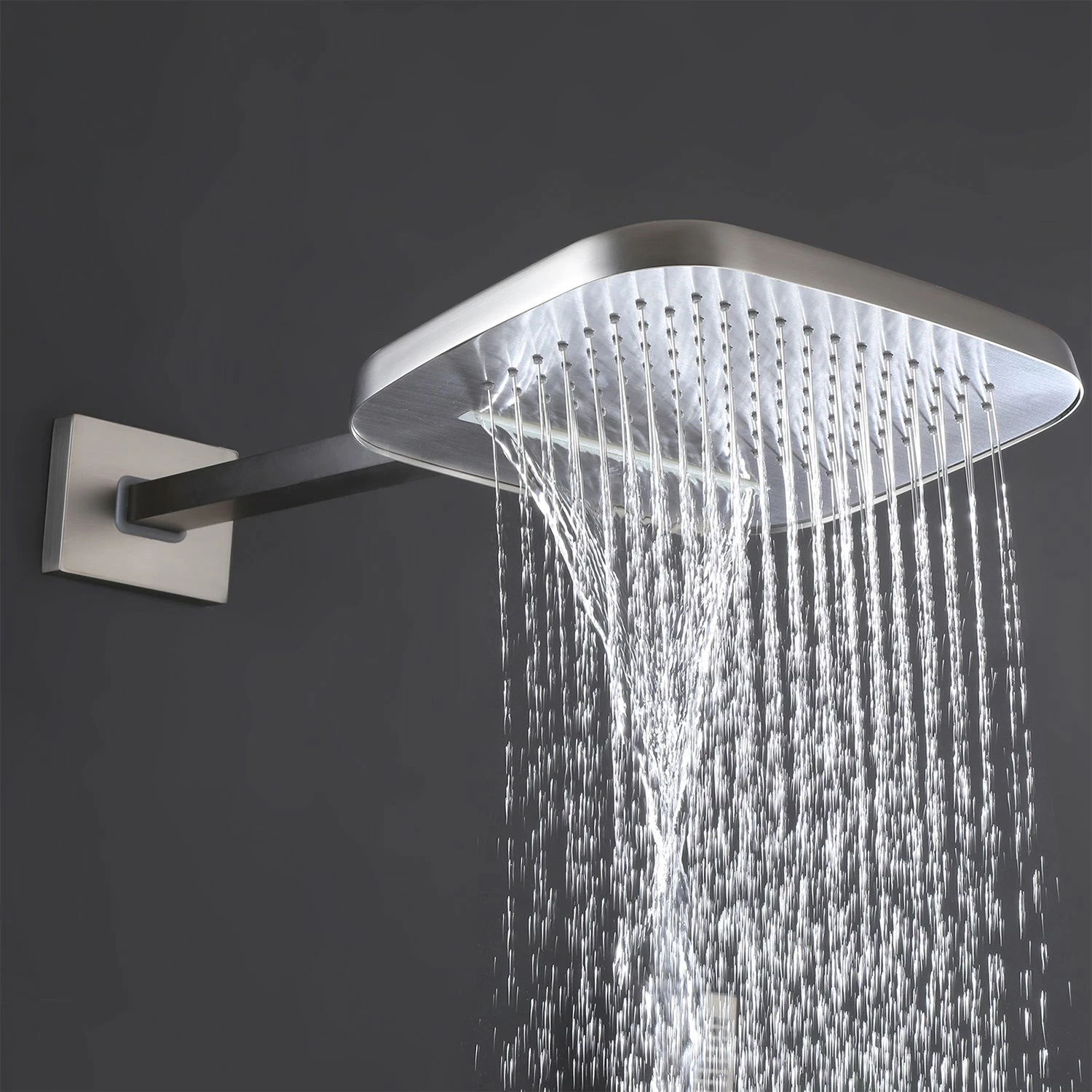 - 【Self-Cleaning Silicone Nozzles & Three Function Shower Set】Soft silicone nozzles allow you to easily wipe away calcium and lime build-up from the spray face of your shower head and hand shower with the touch of a finger. The stainless steel rain shower head has two different modes, rainfall and waterfall.