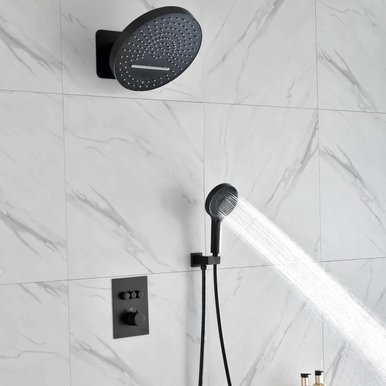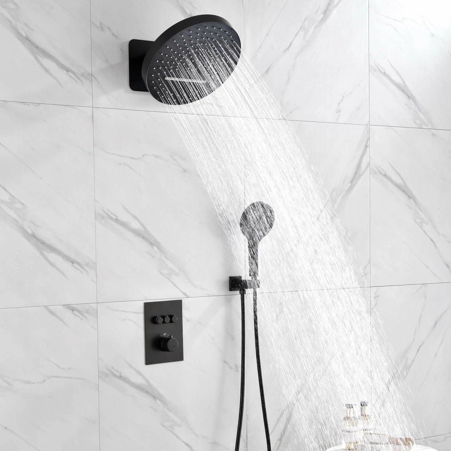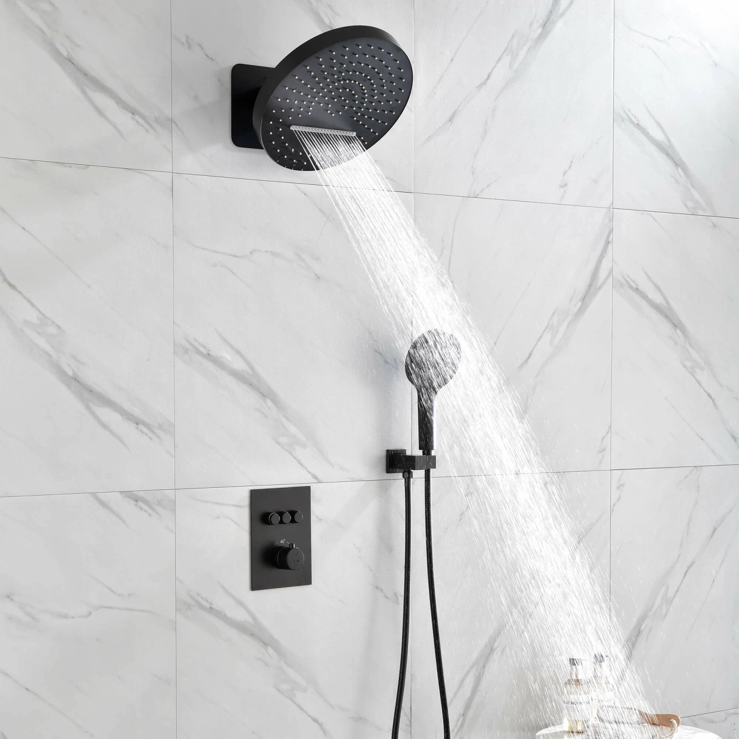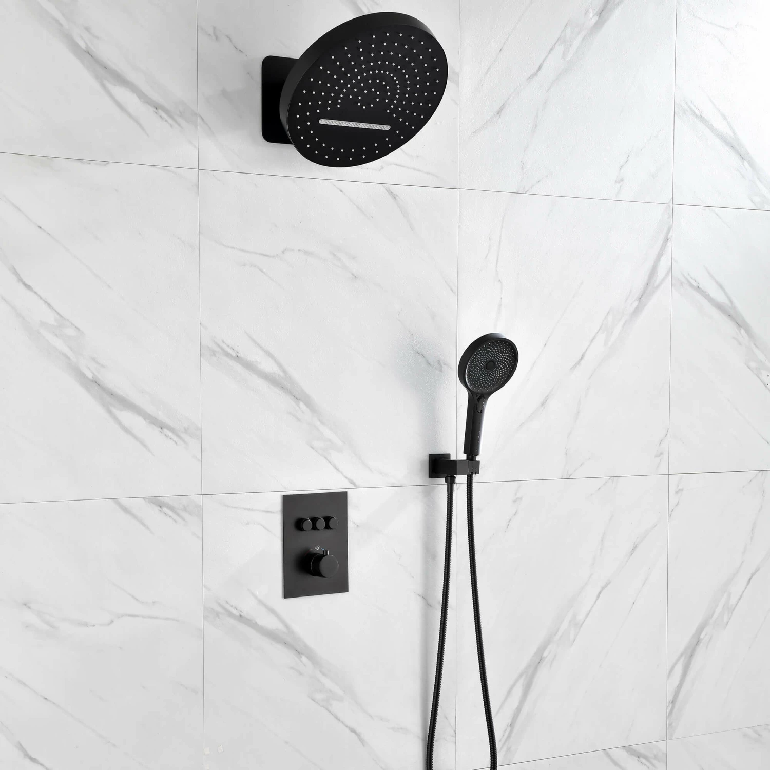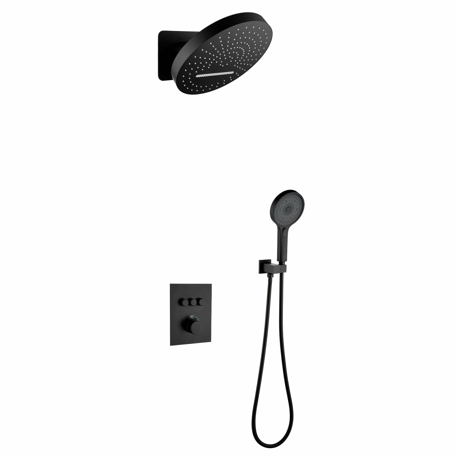 - Easy Operation Plate: 3 functions(rainfall, waterfall, handheld) are controlled by independent button, while the temperature is adjusted by the knob, children and the elder friendly.