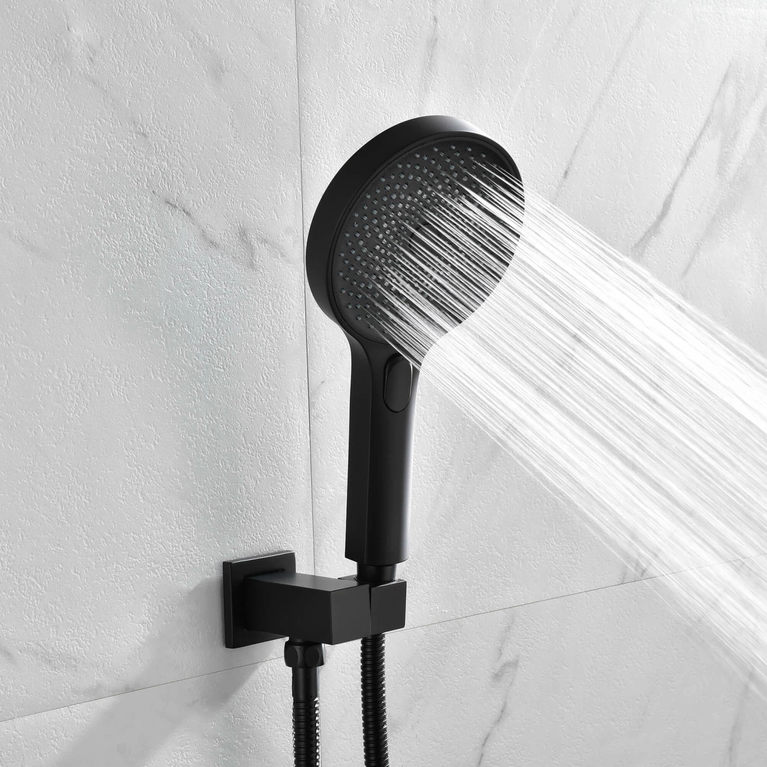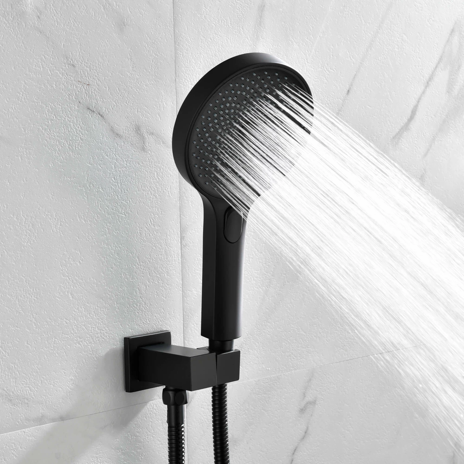 - 3-Function Hand Shower: This hand shower has 3 spray modes (Rain, Mist, Rain+ Mist). The special button design of the high pressure hand held shower head allows you to change the spray setting with one hand easily.