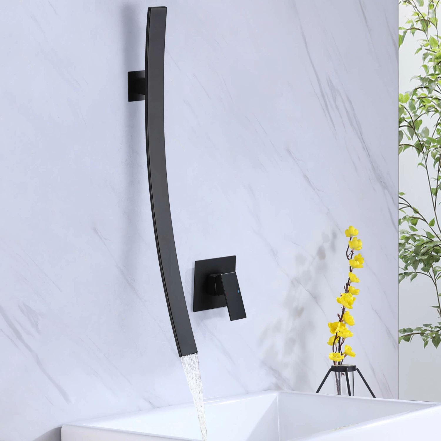 - 【Single handle bathroom sink faucet】Independent switch with wall mount waterfall faucet mixer, separate design easy installation and following your ideal to set up your distance or what is your location, Inspire your personal creativity for bathroom.